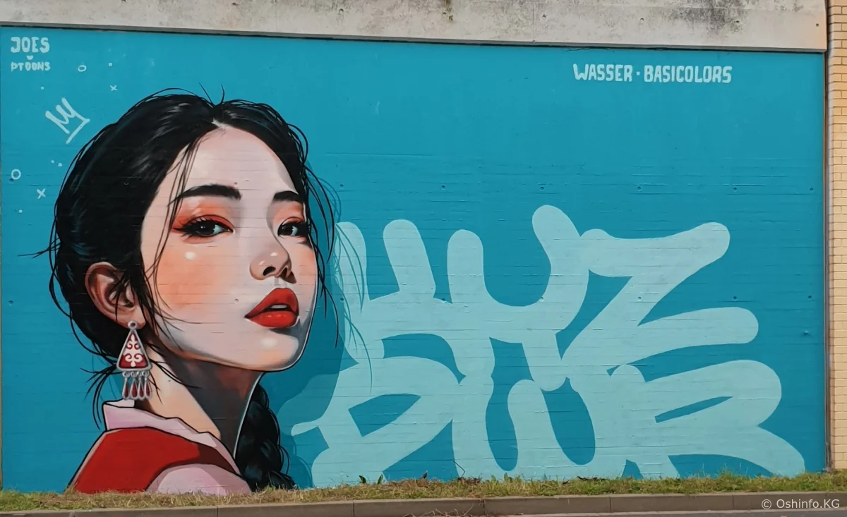 Берлин шаарында basicolors аттуу арт-группанын сүрөтчүлөрү кыргыз улуттук кийимчен кыздын образын чагылдырган мурал жаратышты.