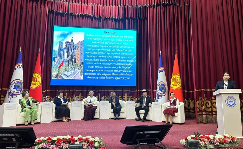 «Манас» эпосу түрк дүйнөсүнүн идеологиясына айланышы керек»: Кыргыз-Өзбек Эл аралык университетинде эл аралык симпоизм өтүүдө