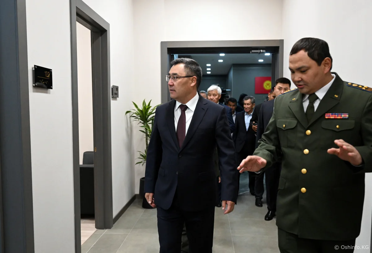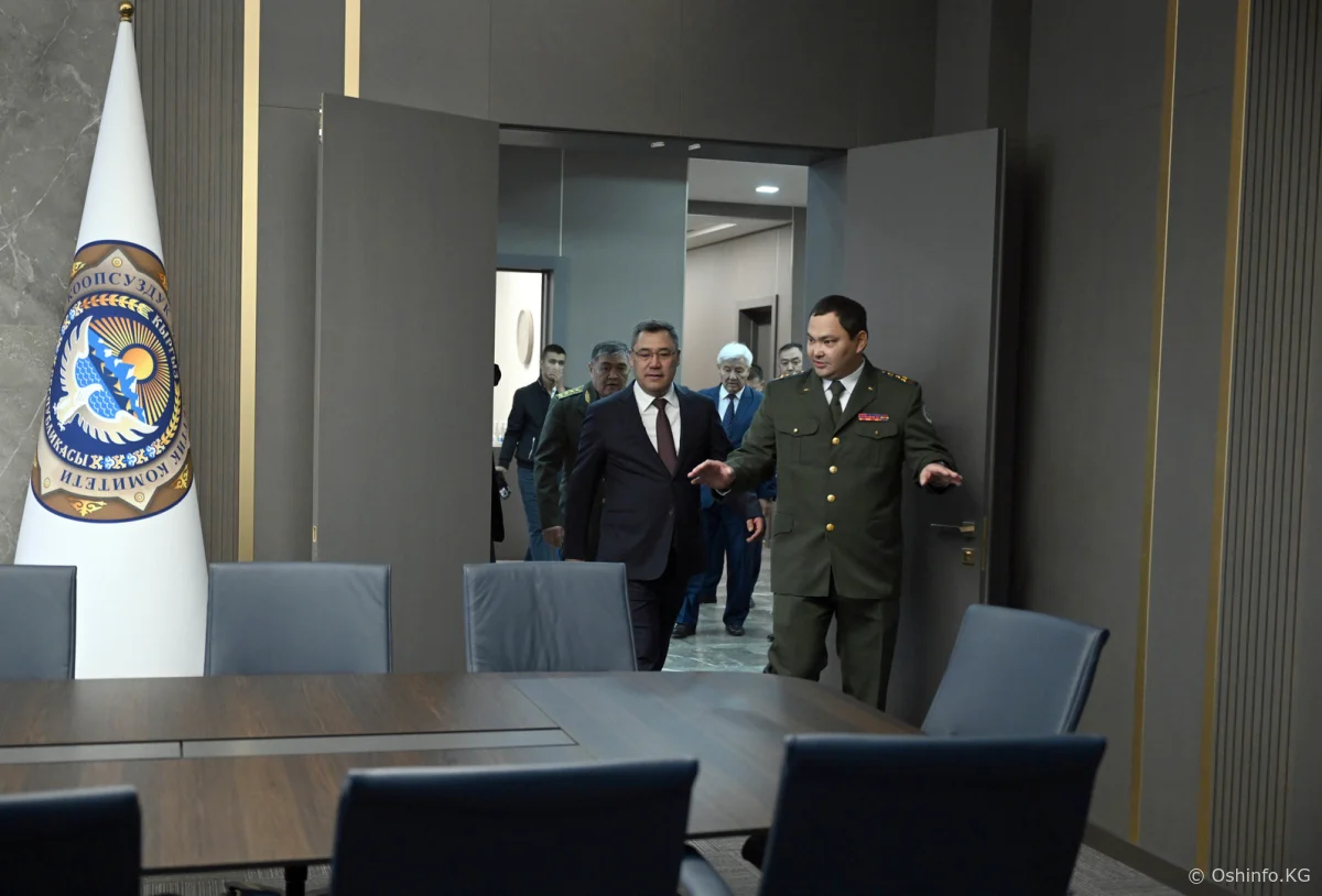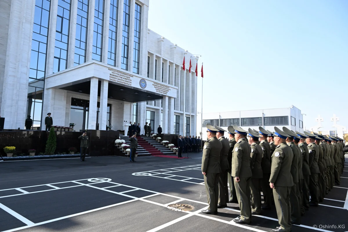 Президент Садыр Жапаров 6-октябрда Бишкек шаарындагы Улуттук коопсуздук мамлекеттик комитетинин (УКМК) Башкы башкармалыгынын жаңы имаратынын ачылыш аземине катышты.