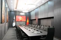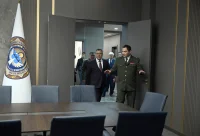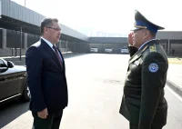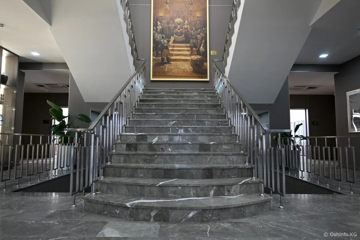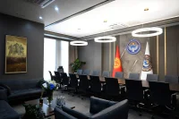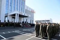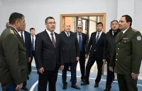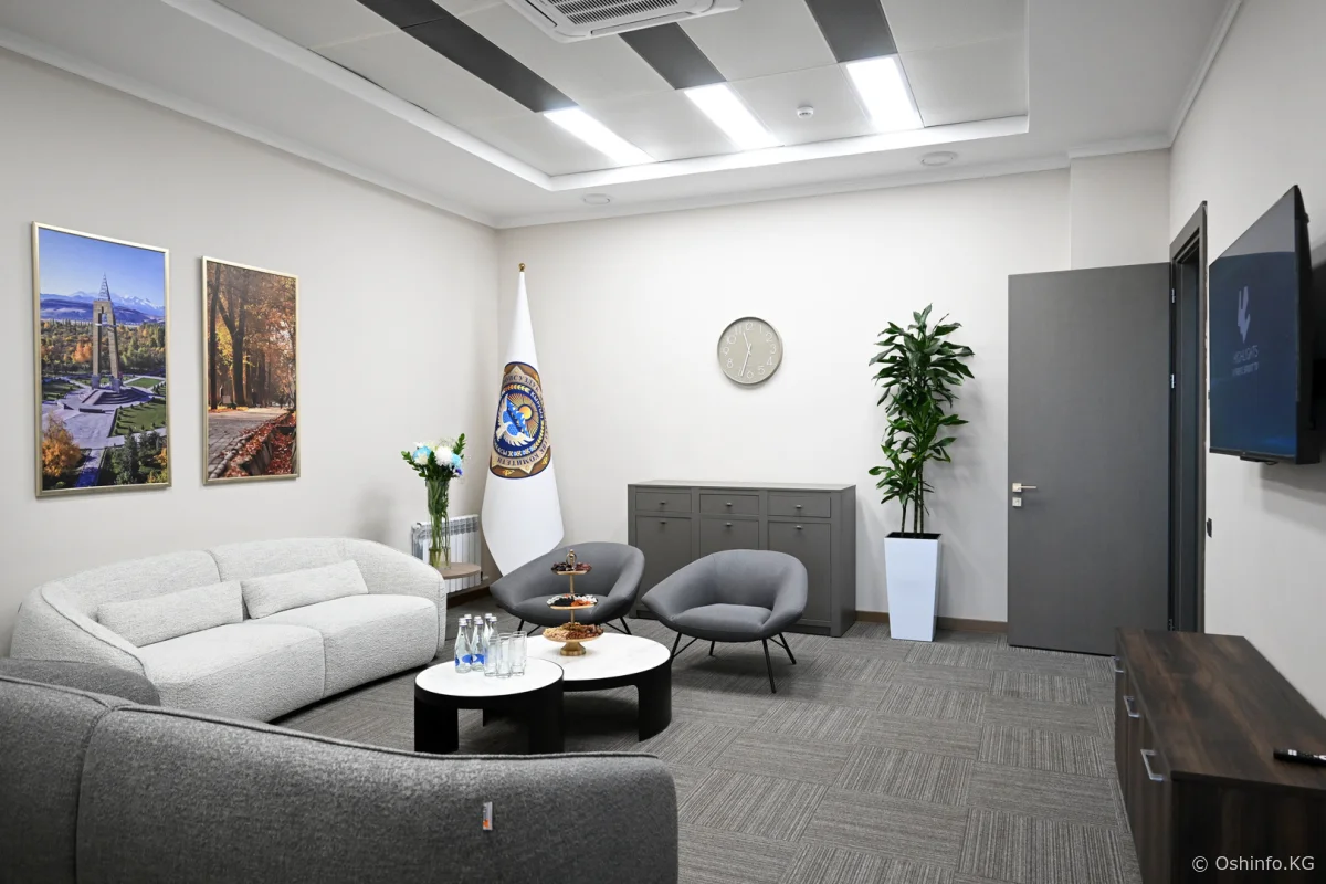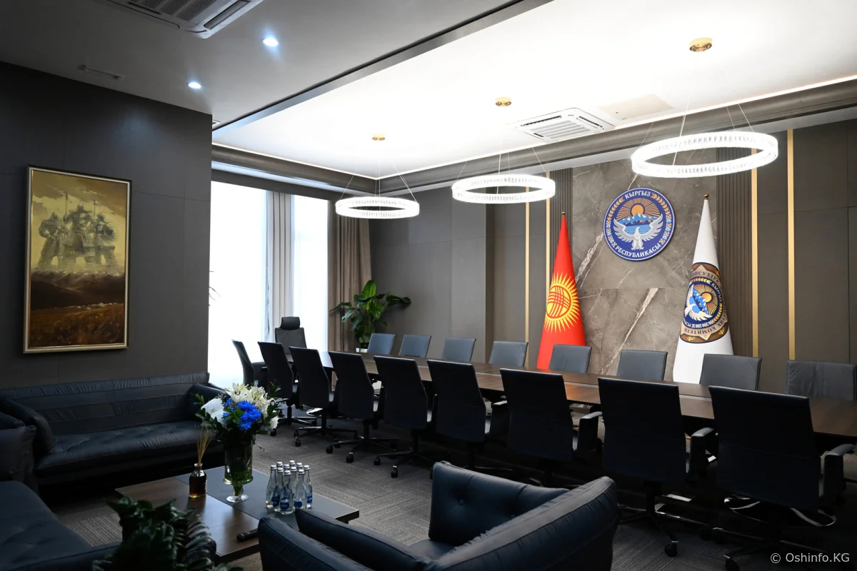 Андан соң ал жаңы административдик имараттын инфраструктурасы менен таанышып, жумушчу кабинеттерди, административдик жана конференц-залдарды, спорт залдарды, ошондой эле казарма менен ашкананы көрүп чыкты.