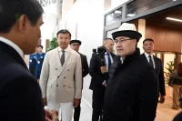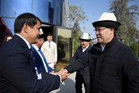 Президент Садыр Жапаров меймандар менен кыскача саламдашып, символикалык түрдө комплекстин боосун чечүү аркылуу расмий ачылышты жасады.