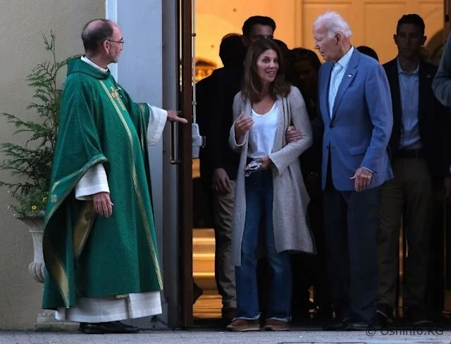 50 мүнөттүк сыйынуудан кийин Байден чиркөөгө келгендер менен болжол менен 10 мүнөт сүйлөшкөн. Бул анын эл алдына чыккан алгачкы көрүнүшү, анткени буга чейин NBC телеканалы Байден простата безинин төртүнчү стадиясындагы рагына каршы беш жумалык нур жана гормоналдык терапия курсун баштаганын кабарлаган. Оору сөөккө чейин жайылып кеткен.