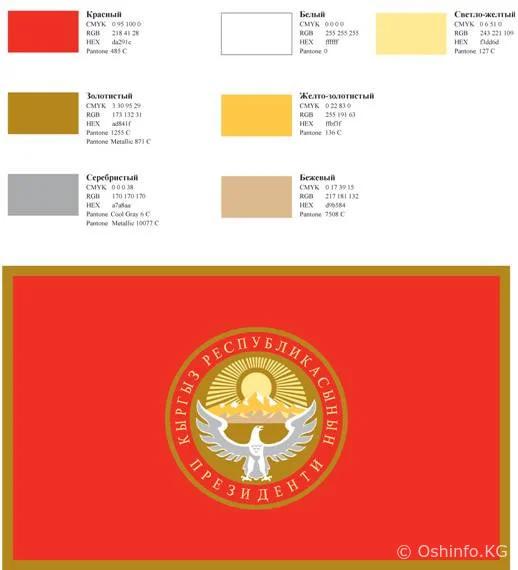 Штандарт түзүлүшү, түсү жана схема жөнүндөгү бардык талаптар Спецификациянын 1-тиркемесинде көрсөтүлгөн эталонго дал келиши керек.