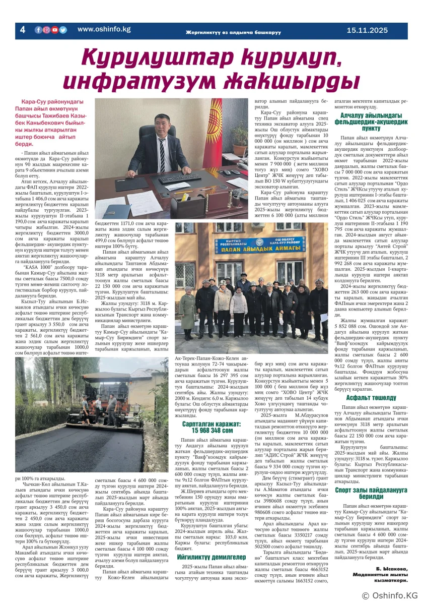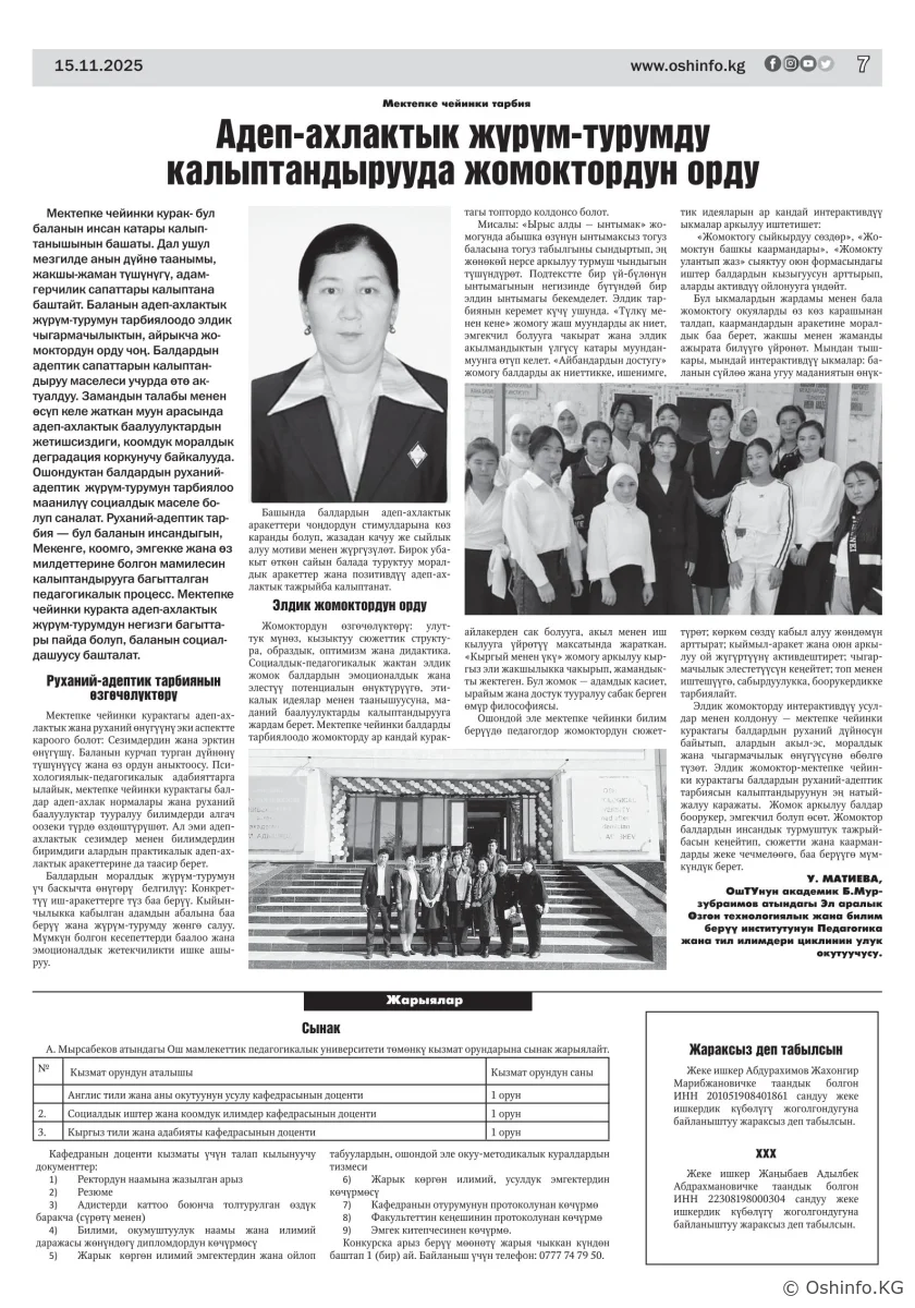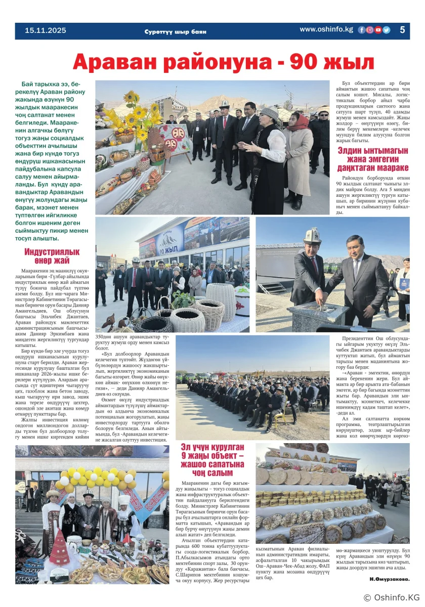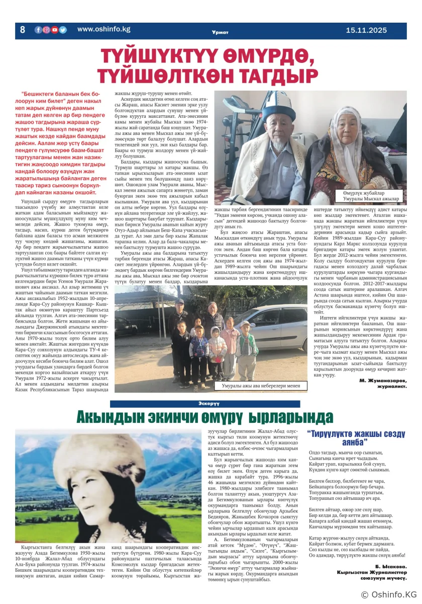 "Ош жаңырыгы" гезитинин 2025-жылдын 15-ноябрында чыккан №30 саны