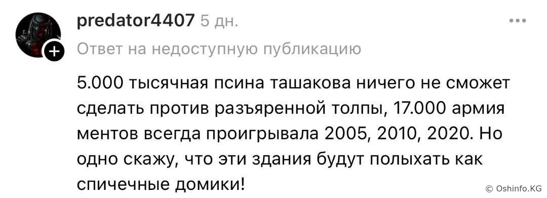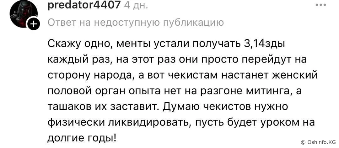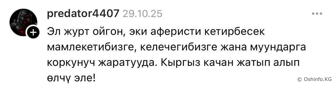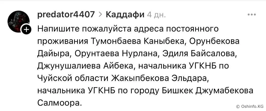 Маалыматка караганда, кыргызстандык Instagram жана Threads сегменттеринде predator4407 аттуу аккаунт аныкталган. Тергөөнүн версиясы боюнча, бул аккаунттун колдонуучусу чет өлкөдө жашынып жүргөн «деструктивдүү күчтөрдүн» лидерлери менен байланышта болгон.