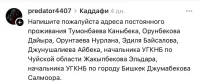 «Алардын көрсөтмөлөрүнө ылайык, акыркы убакта массалык башаламандык уюштурууга, бийликти күч менен басып алууга чакырган мүнөздөгү постторду жана комментарийлерди активдүү чыгарып келген. Ошондой эле айрым мамлекеттик структуралардын жетекчилери жөнүндө жабык маалыматтарды чогултуп жүргөн», — деп айтылат маалыматта.