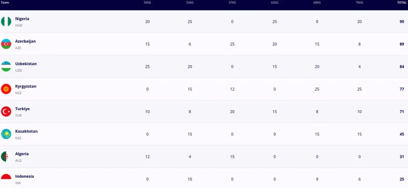 Командалык эсепте улуттук курама 77 упай топтоп, 16 команда арасында 4-орунга жайгашты.