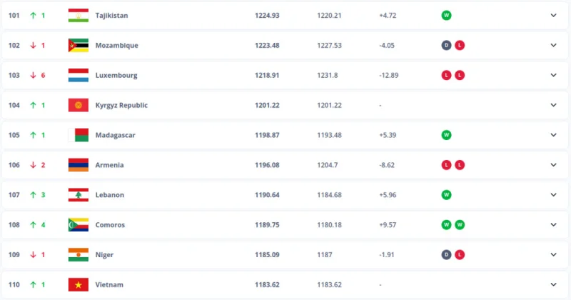 Кыргызстандын улуттук футбол командасы ФИФА рейтингинде 104-орунда турат.