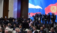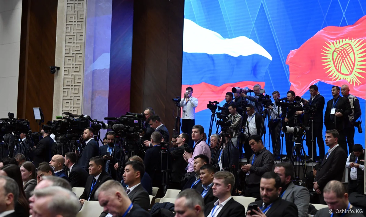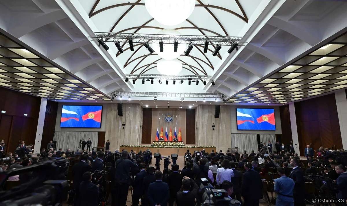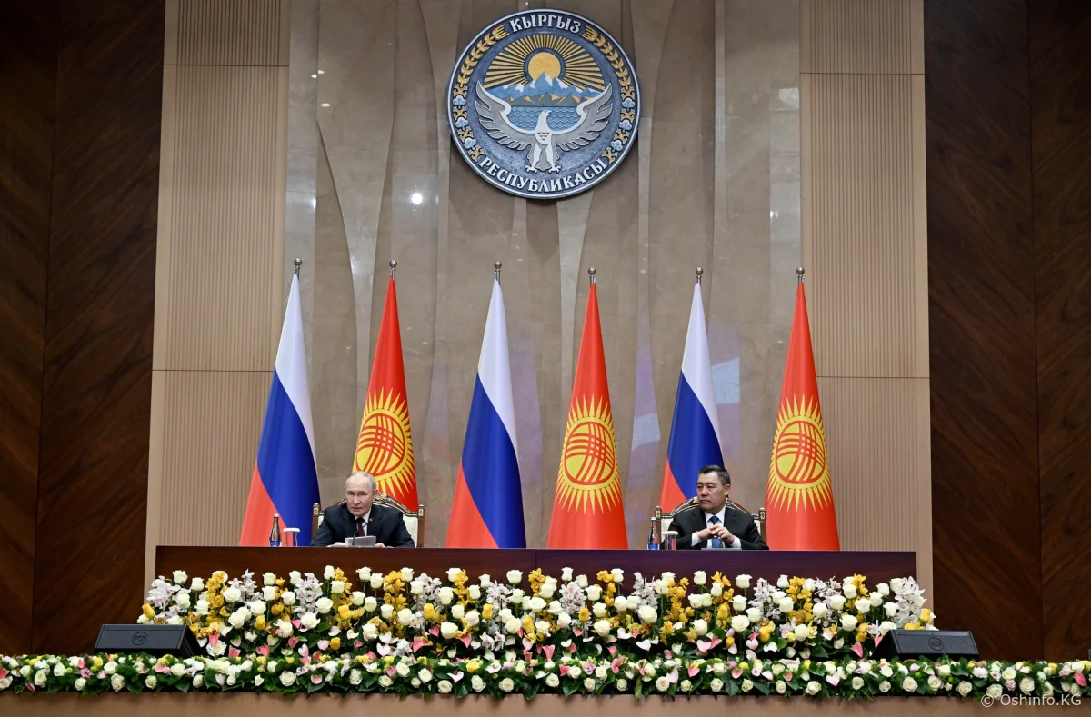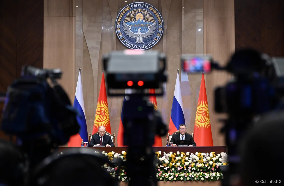 “Урматтуу жалпыга маалымдоо каражаттарынын өкүлдөрү, Айымдар жана мырзалар, Россия Федерациясынын Президенти, урматтуу Владимир Владимирович Путиндин Кыргыз Республикасына мамлекеттик сапар менен келишине чын жүрөктөн кубанычта экенибизди дагы бир жолу билдирем.