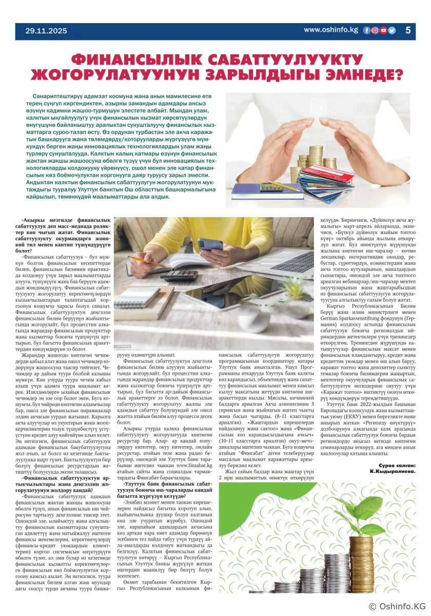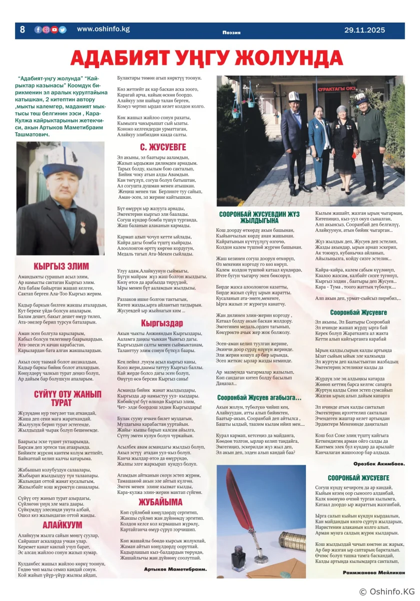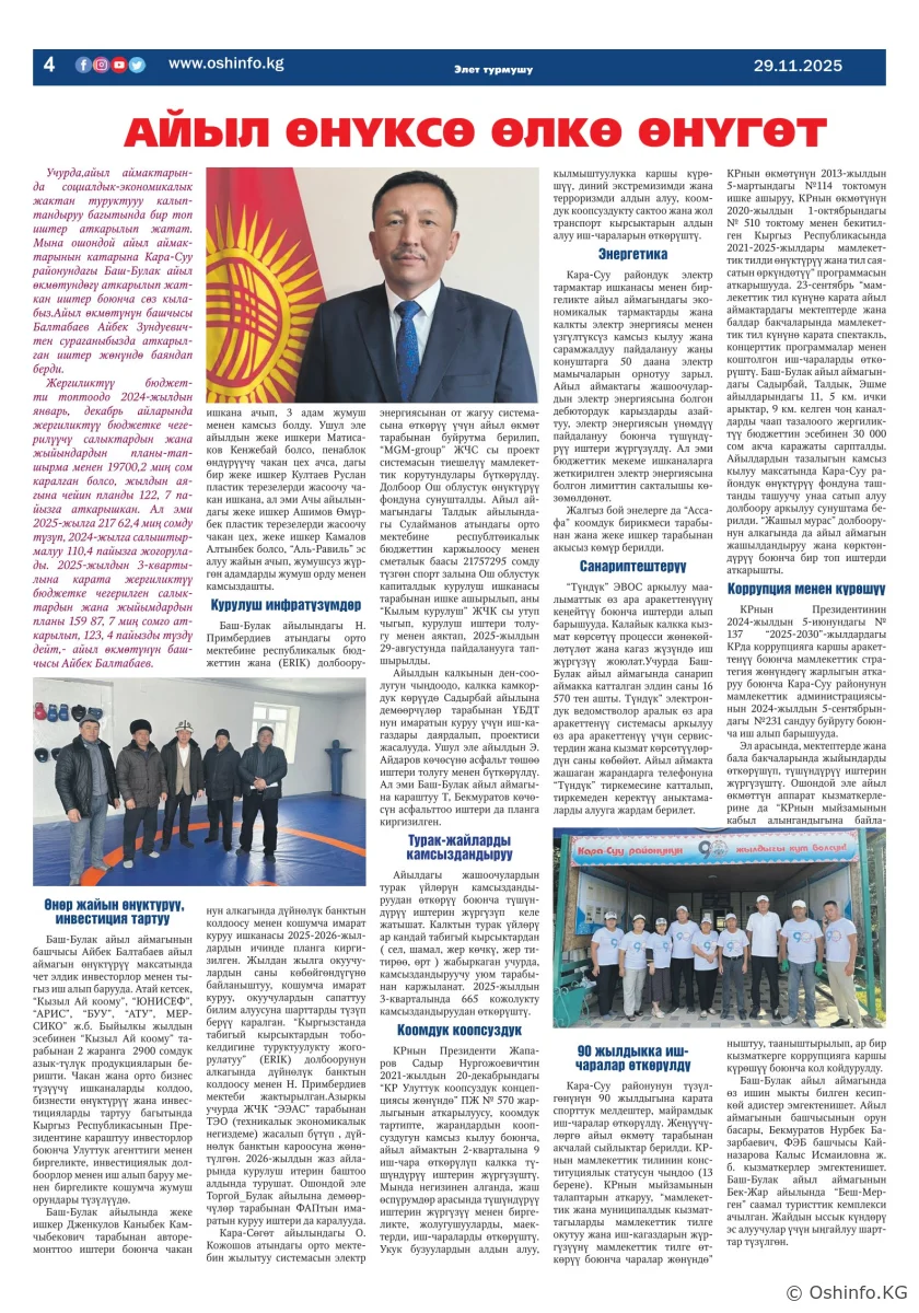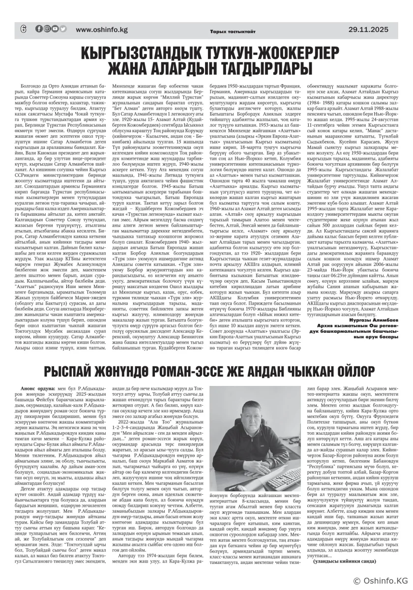 "Ош жаңырыгы" гезитинин 2025-жылдын 29-ноябрында чыккан №36 саны