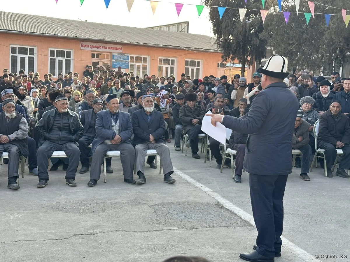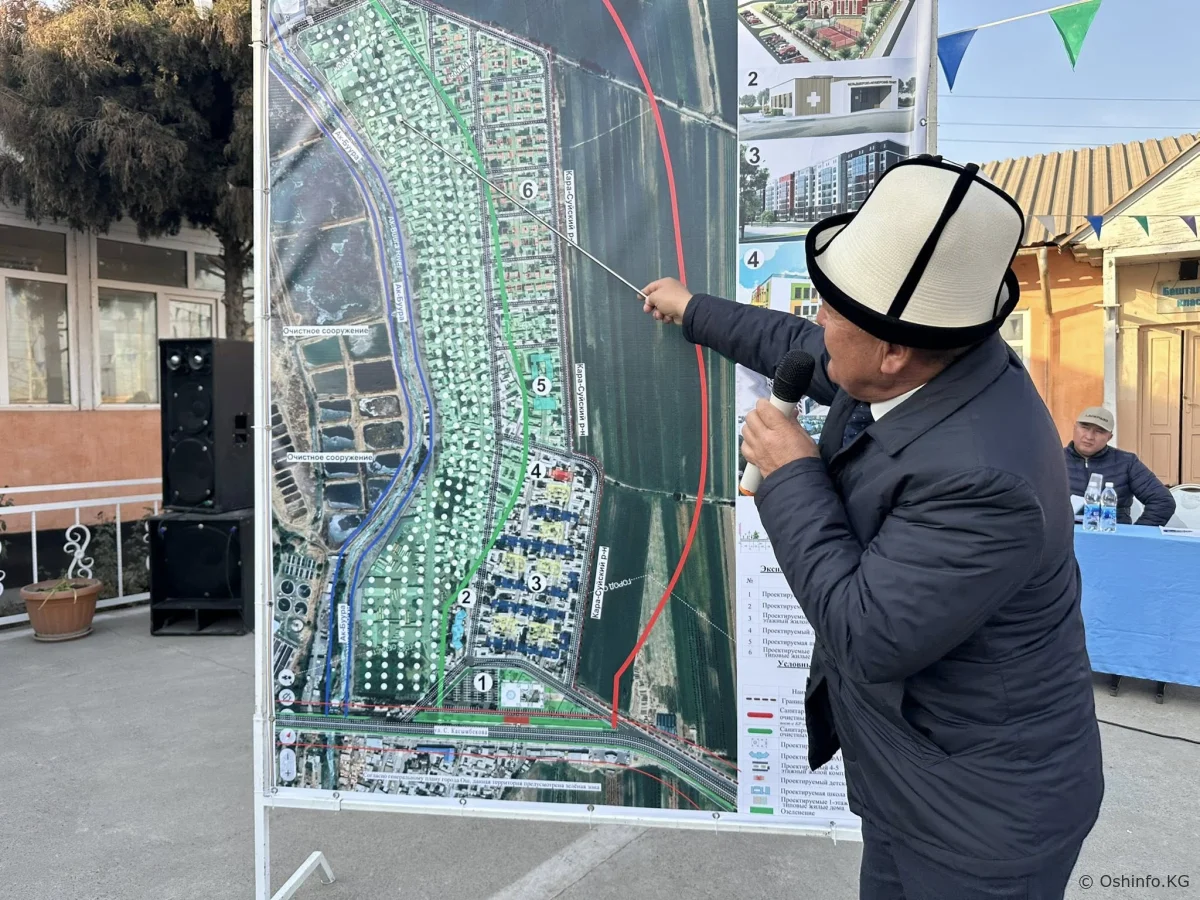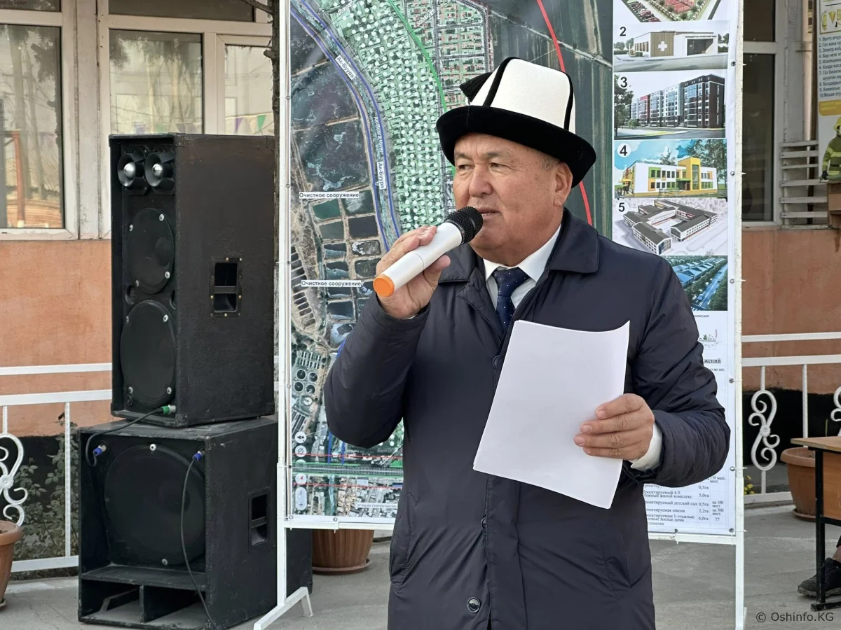 « Жаңы- Маале конушунун тургундары, «жаманын жашырсаң өлүм ашкере кылат» . Шаардагы эң начар конуш сиздердин конушуңар. Рейд учурунда келип көрүп чыктым. Чындыгында жашоо шарт начар. Мурда Кара-Суу районуна карап келсеңиздер, учурда шаардыксыңар. Акыркы 40 жылда эч нерсе өзгөргөн жок. Мен бала кезимде келчү элем. Жашоо ошондой эле. Кээ бирлер 80 жылдан бери жашап келе жатат экен. Биз бул аймакты реновация кылсак деп сүйлөштүк. Сиздер жашап жаткан жер 49 гектар жерди ээлейт. 3900 - калктын саны. Суу корук, суу тазалоочу жерден 500 метр алыс жашашыңыздар керек болчу. Бирок сууга чейин келип алгансыздар. Биз ошону 250 метр жылдырып, 5 кабатка чейин көп кабаттуу үйлөрдү салабыз.Этап-этабы менен куруп кетебиз. Эч кимиңиздер көчөдө калбайсыздар. 4 жылдык мектеп бар экен. Мектептин жерин аныктап койдук. 12 жылдык мектеп куруп беребиз. Бул жер суу тазалоочу жер болгон үчүн сасык жыт чыгат.