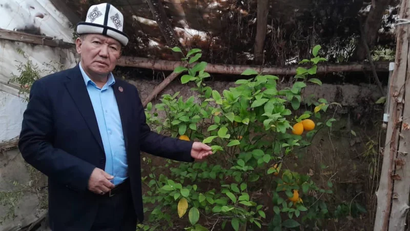 «Жерди бир жарым метрдей казып, күнөскана жасадым. Бир-эки жыл от жагып, жылуулап турдук. Анан бир жылы жагылбай калды. Жазга маал, эми буларды үшүк уруп кетти деп ачсам, жок, үшүк урбаптыр. Ошол ошол болду, анан жылда жылытпай калдык. Күнөскананы полиэтилен кленкалары менен жылуулап жаап коебуз, кышы менен ушинтип, үшүк албай эле жакшы чыгып атат. Ошентип ал жерге өстүрүп жаткан лимонум биздин аба ырайына адаптацияланды, шарташып калды. Азыр өсүп атат,- дейт Аматов.