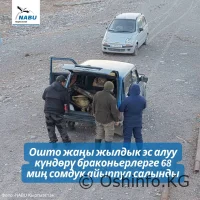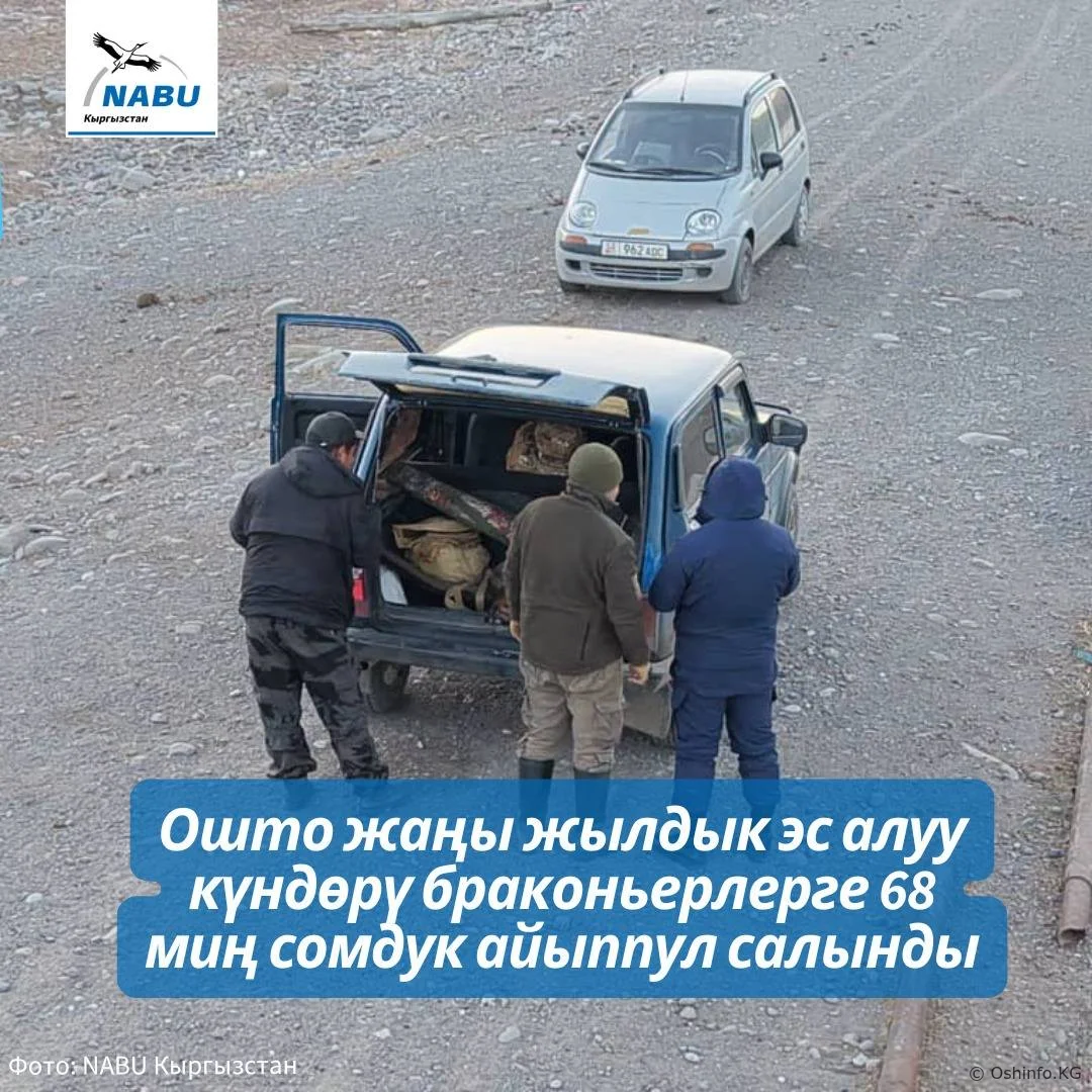 Жаңы жылдык эс алуу күндөрү NABU Кыргызстан уюмунун түштүк бөлүмүнүн кызматкерлери мамлекеттик экологиялык мекемелердин өкүлдөрү менен биргеликте өткөргөн рейддердин натыйжасында, аң уулоо эрежелерин бузуп, мыйзамсыз аңчылык менен алектенген жарандарга 68 миң сомдук айып пул салышты. Бул тууралуу аталган уюмдун басма сөз кызматы кабарлады.