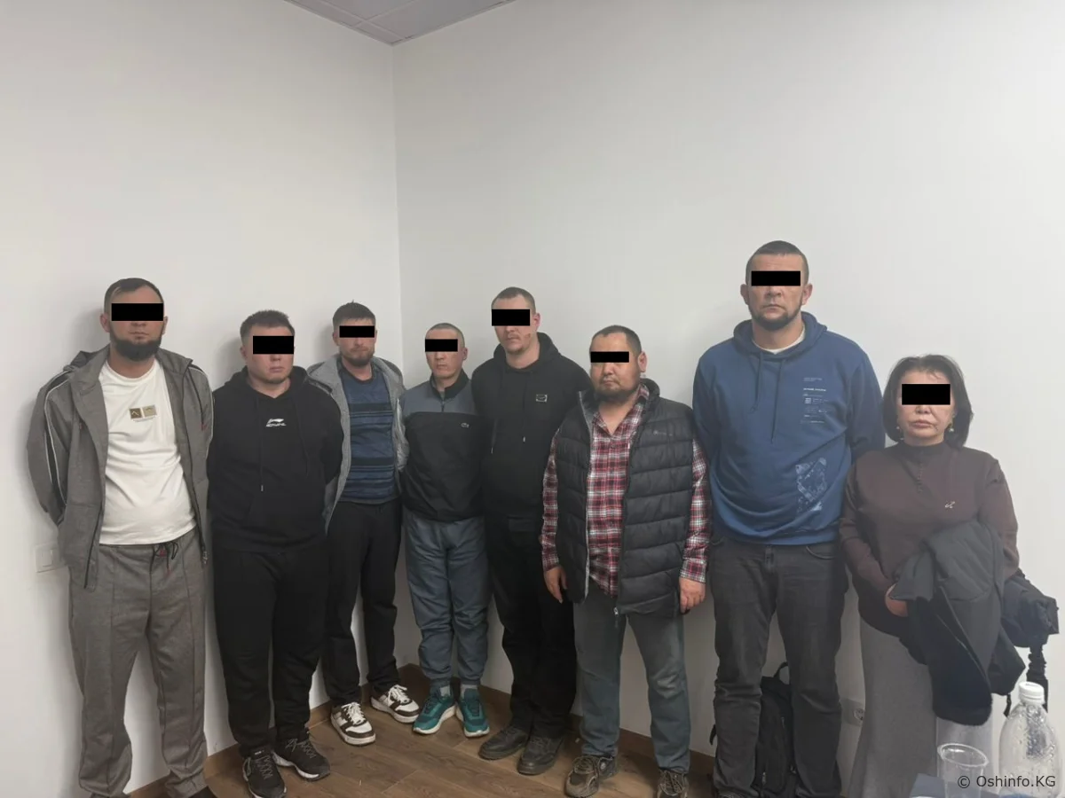 Жүргүзүлгөн тергөө-оперативдүү иш-чаралардын жыйынтыгында жана КР Кылмыш-жаза процессуалдык кодексинин 96-беренесине ылайык, И.Р.К., М.Дж.Н., Е.А.В., М.И.М., М.В.А., Т.Ч.А., К.К.И. жана Х.С.В. аттуу жарандар кармалып, Бишкек шаардык ички иштер башкармалыгынын убактылуу кармоочу жайына киргизилди.