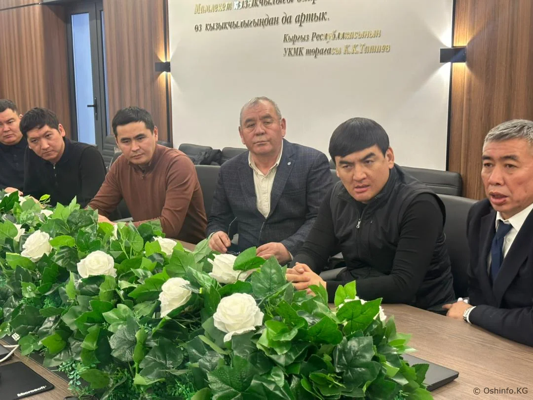 Жыйында УКМКнын кызматкери аталган компаниянын Ош шаарынын Төлөгөн Касымбеков көчөсүнүн №8А дарегинде жайгашкан көп кабаттуу үйлөрдүн курулушунун кечеңдешинен улам элдин наарачылыгы пайда болгонун белгилеп, өлкө жетекчилигинен ушул ишти көзөмөлдөп, элдин арызын карап коюу тууралуу тапшырма түшкөнүн билдирди.