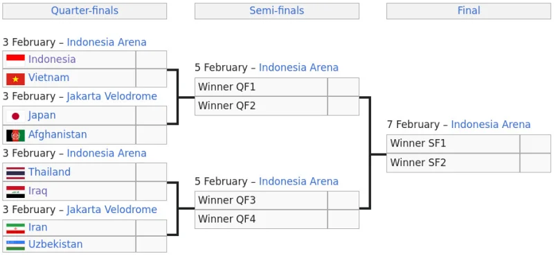 Турнир 27-январда Жакарта шаарында 16 команданын катышуусу менен башталган.