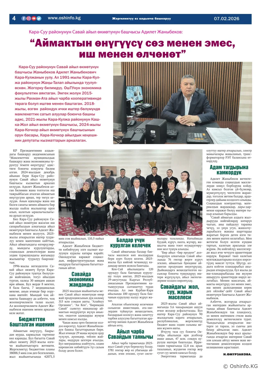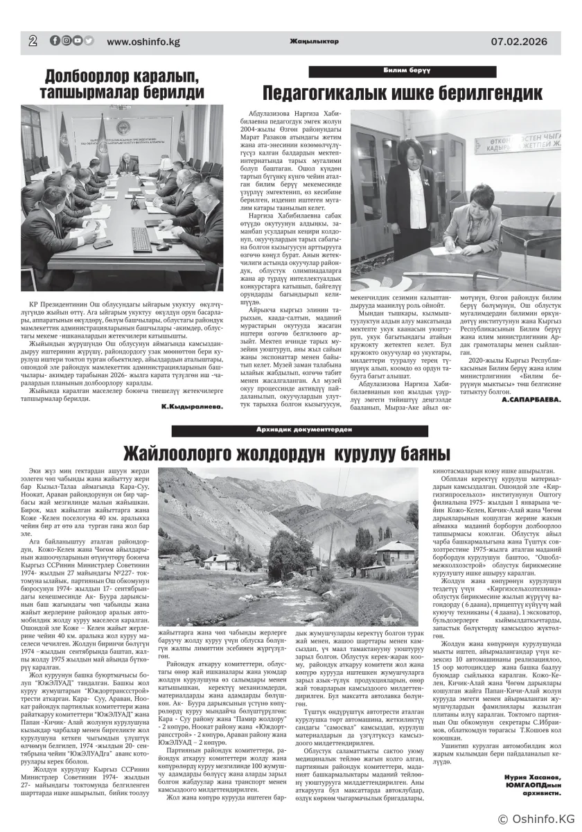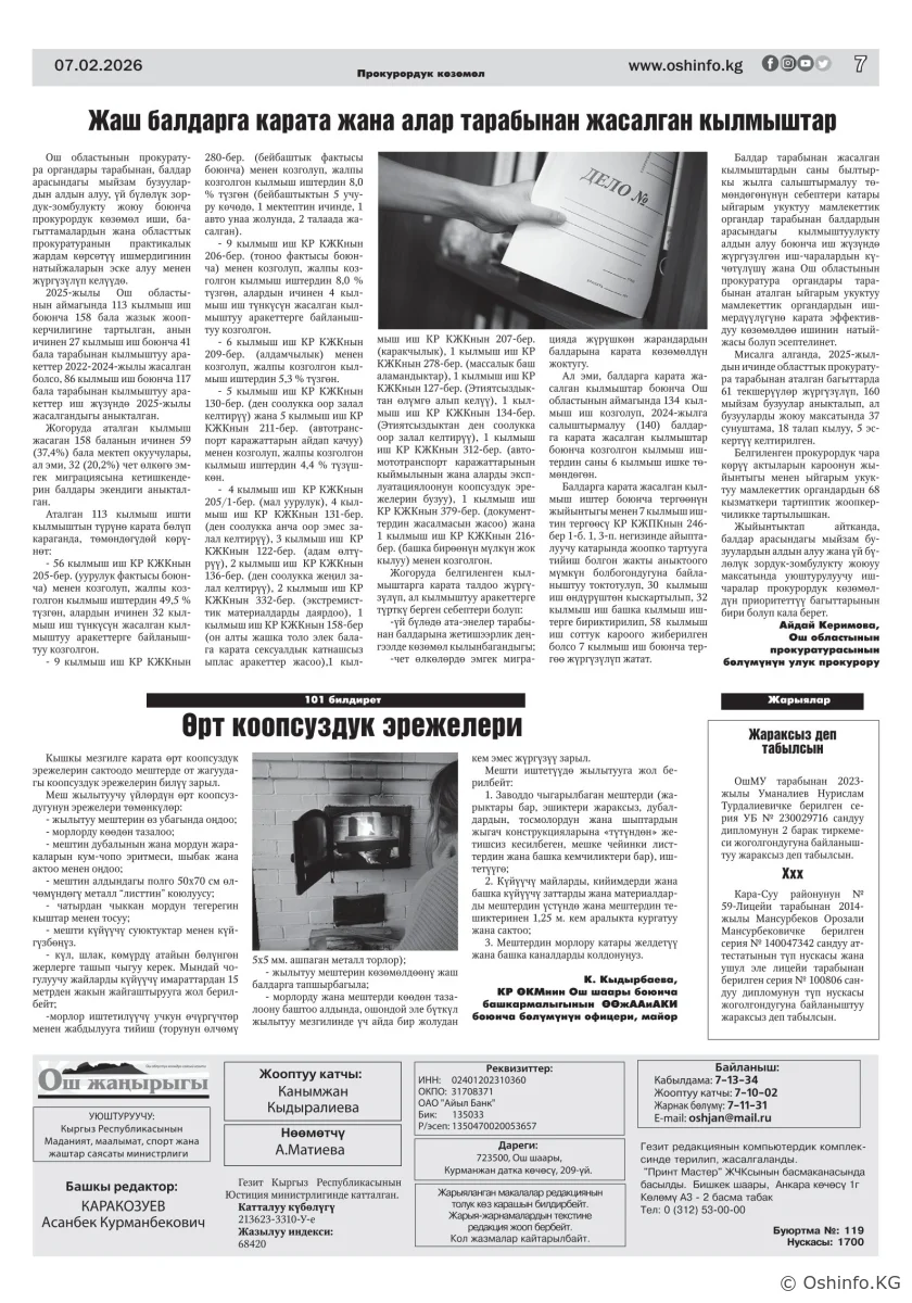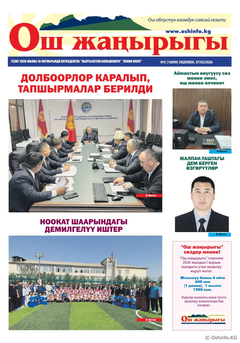 "Ош жаңырыгы" гезитинин 2026-жылдын 7-февралында чыккан №3 саны