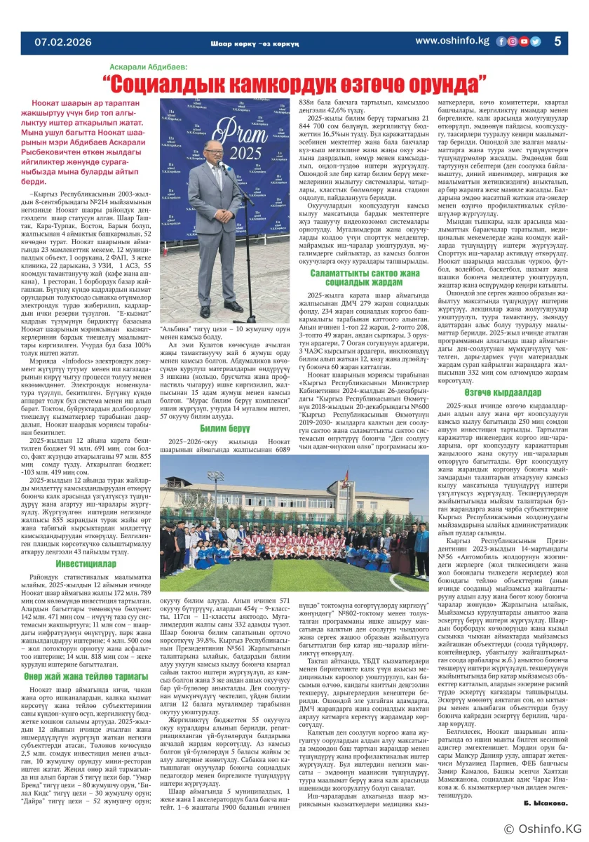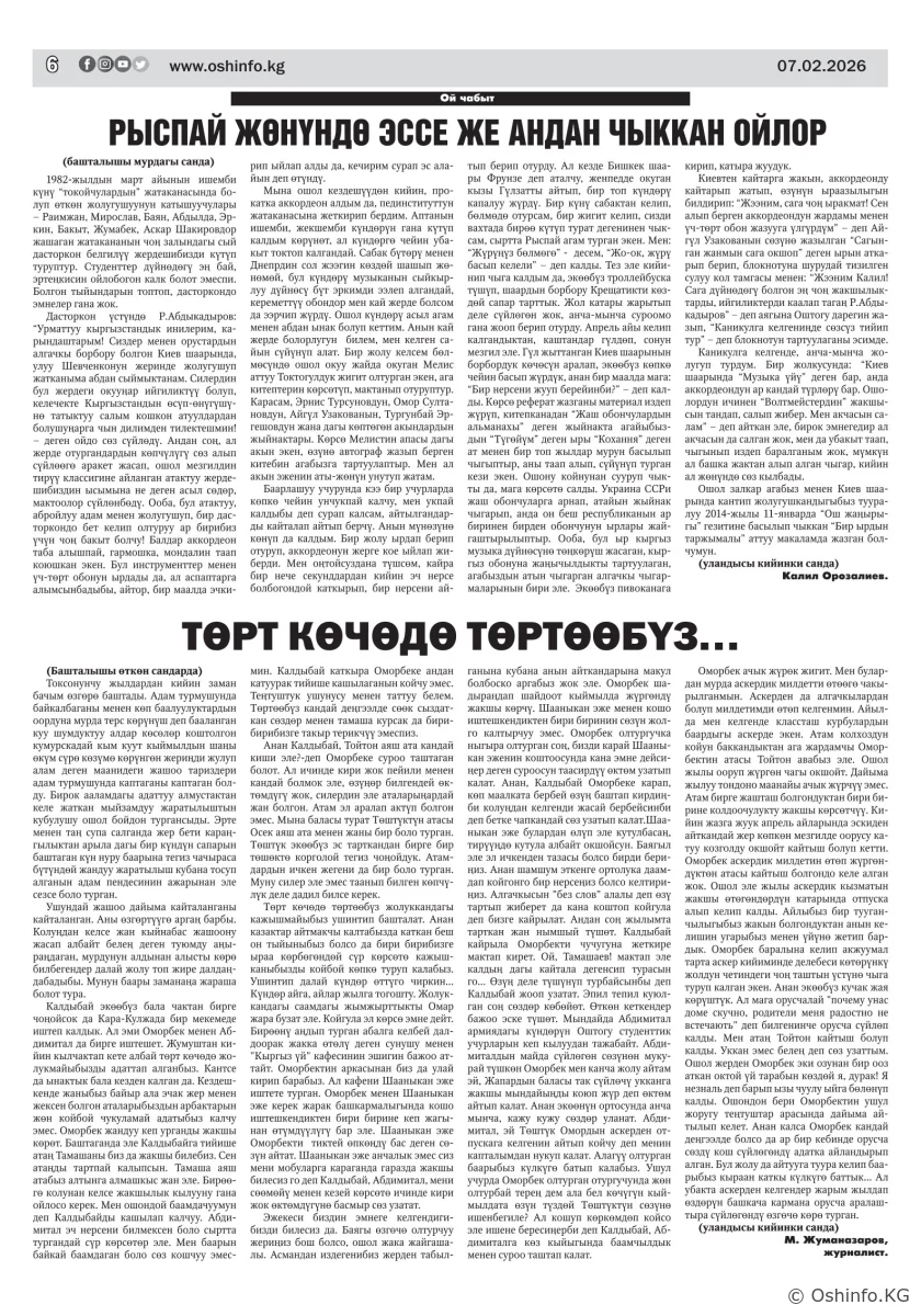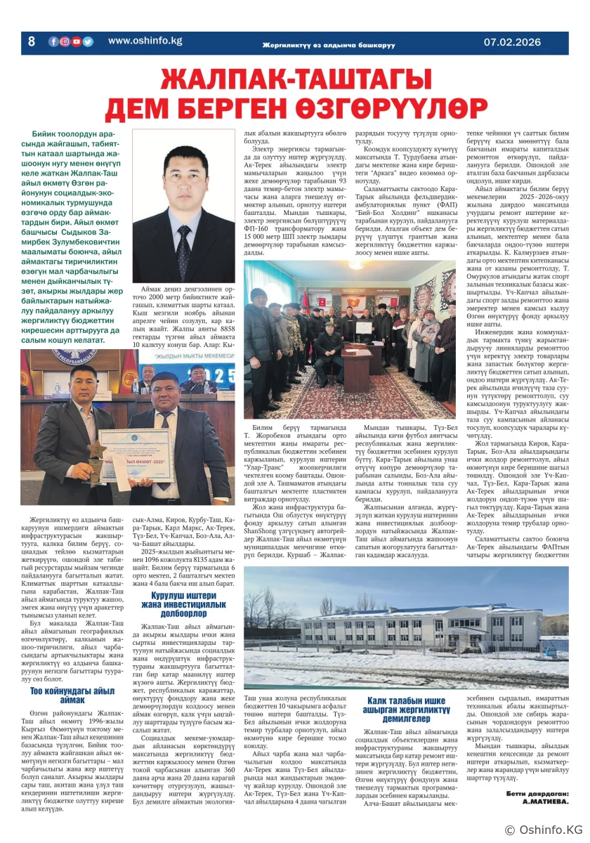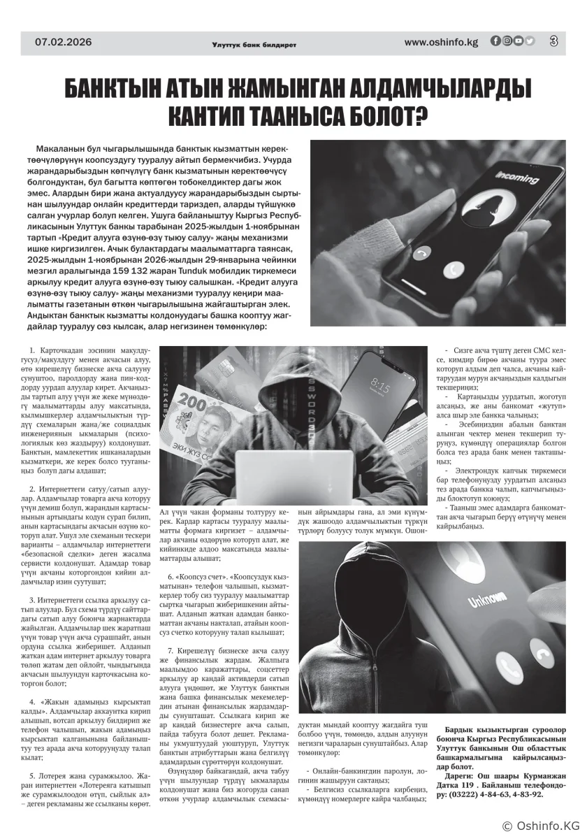 "Ош жаңырыгы" гезитинин 2026-жылдын 7-февралында чыккан №3 саны