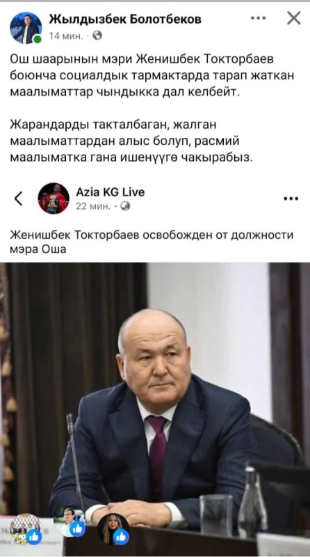 Буга чейин соцтармактын колдонуучулары Жеңишбек Токторбаевдин кызматтан алынганын жазышкан.