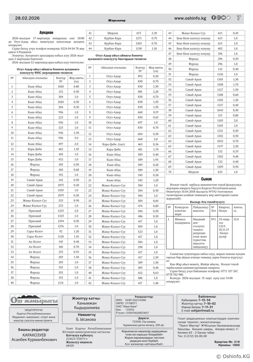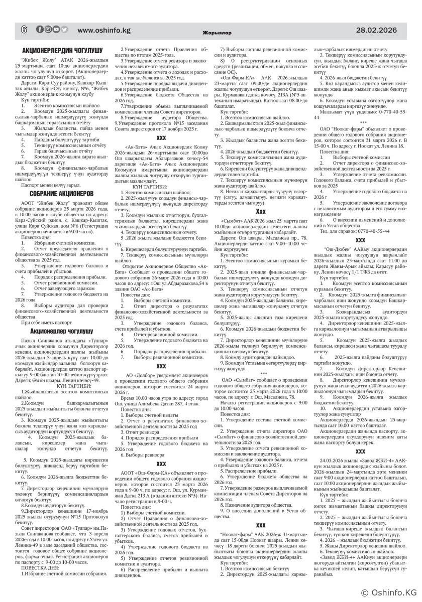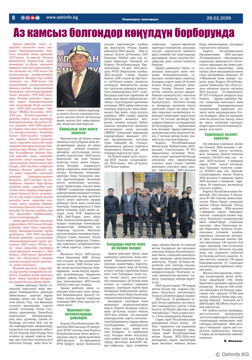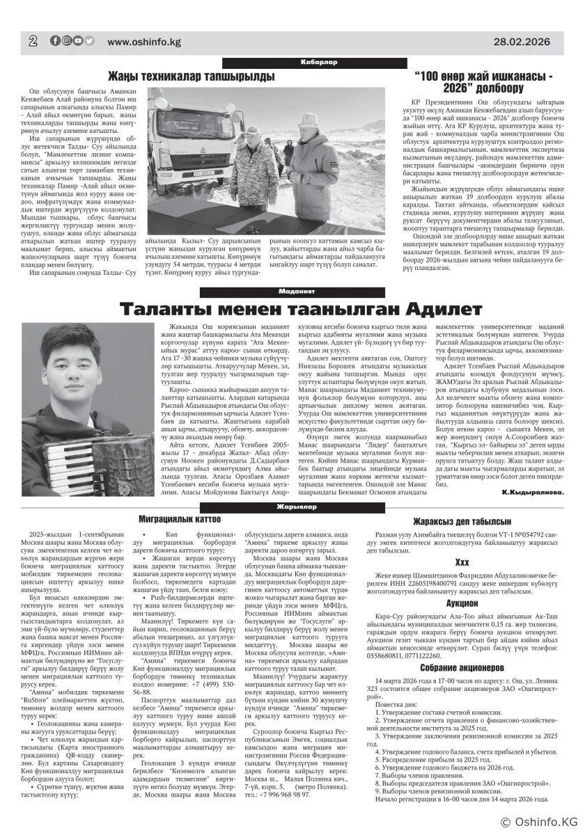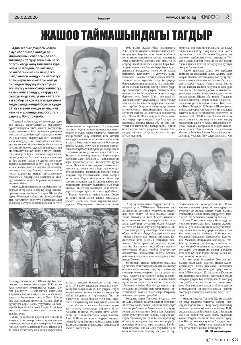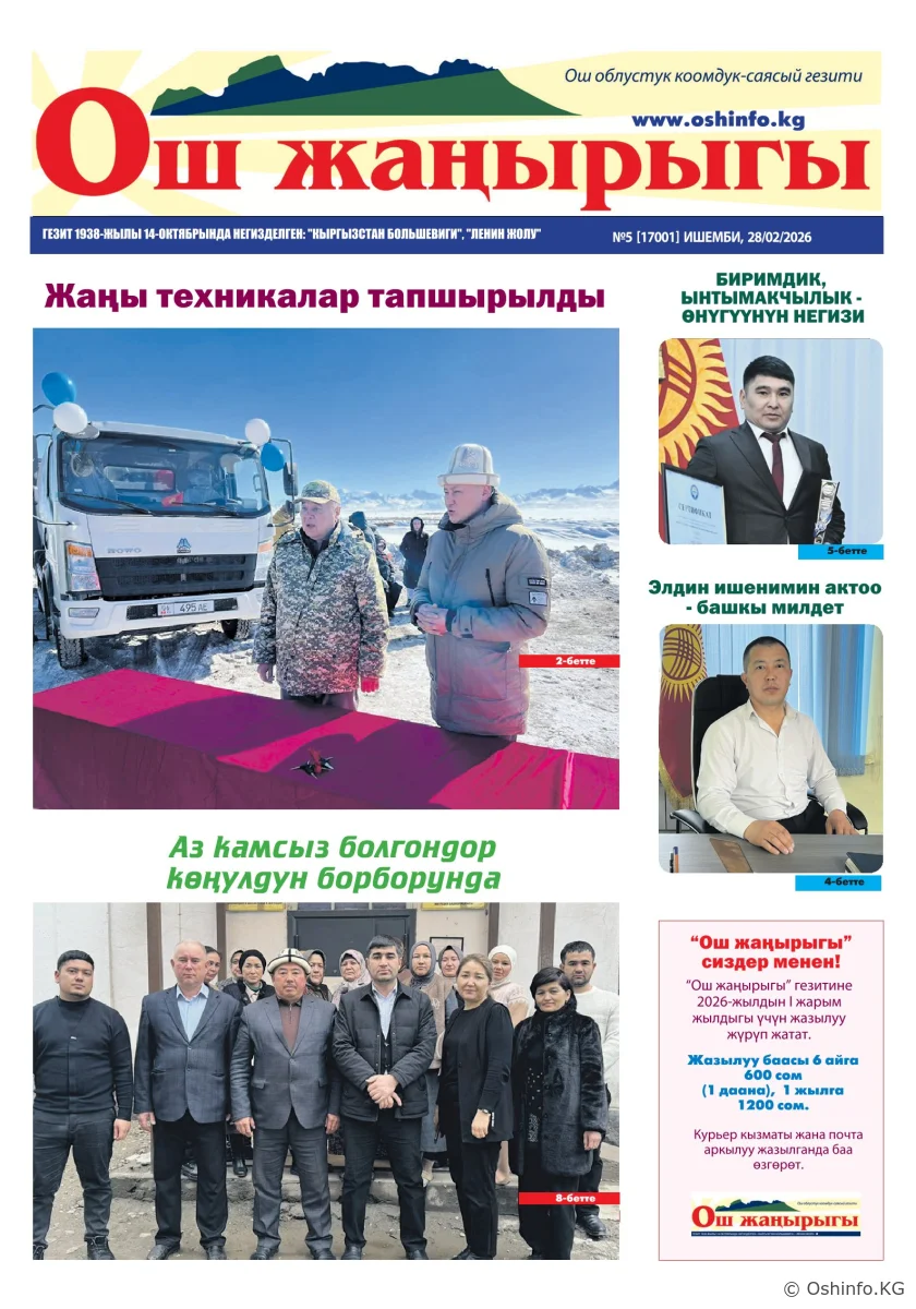 "Ош жаңырыгы" гезитинин 2026-жылдын 28-февралында чыккан №5 саны
