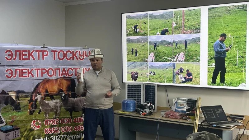 «Ал эми жылкыларды чочутуп албоо үчүн, тосмонун тегерегине коңгуроолорду илип коюу сунушталат. Коңгуроо жылкыларга алдыда тоскоолдук бар экенин эскертип турат. Мындай учурда жылкылар этияттык менен жылып, мурдуна жеңил ток тийгенде, экинчи ирет жакындабоону тез эле үйрөнүшөт», — дейт Адыл Сыдыков.