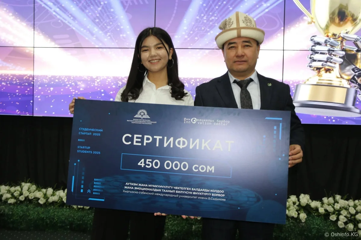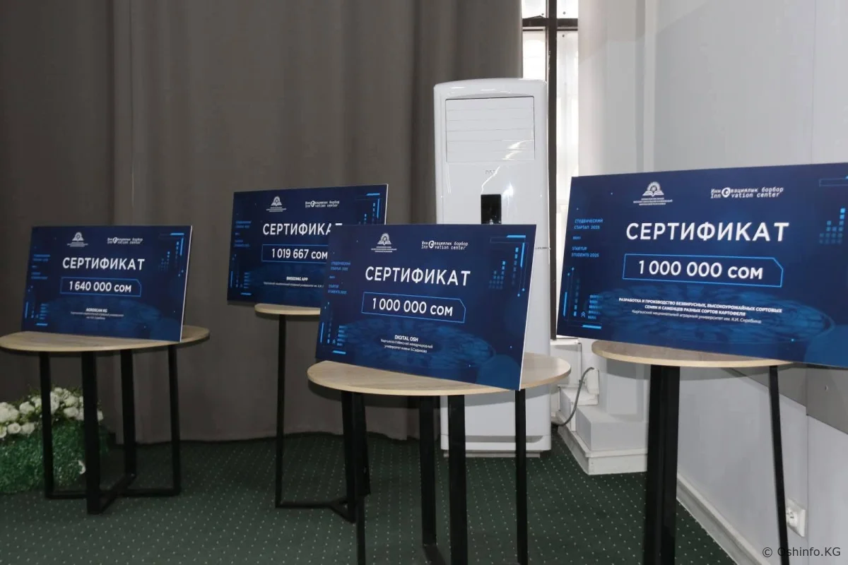 Жеңүүчүлөрдү сыйлоо аземине КӨЭАУнун ректору, экономика илимдеринин доктору, профессор Абдилбает Мамасыдыков да катышып, стартаптардын ишке ашырылышы аймактагы социалдык жана санариптик өнүгүүгө олуттуу салым кошорун белгиледи.